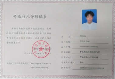 完成课程并通过考核后,学员将获得由国家相关部门颁发的智能制造专业技术人员资格证书。该证书不仅是对学员专业水平的认可,也是求职市场上的重要加分项,有助于提高个人的就业竞争力。